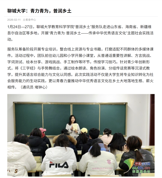 2026年寒假,我院严格落实学校寒假社会实践工作部署,以“青春为中国式现代化挺膺担当”为主题,结合“三下乡”“返家乡”“青鸟计划”等实践平台...