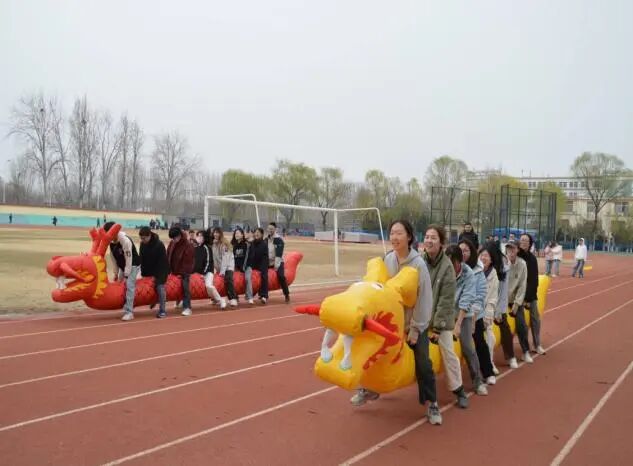 “合力建塔”项目考验着队伍的团队协作能力。各小组队员齐心协力,通过拉绳控制吊钩,小心翼翼地吊起积木层层垒高。每一次操作都展现出团队成员间的默契与信任,大家在不断调整中向着高塔目标奋进。“旱地龙舟”环节则是速度与激情的比拼。同学们跨上色彩鲜艳的充气龙舟,口号响亮,步伐一致,在跑道上奋勇向前。他们宛如一条条灵动的蛟龙,体现着团队的凝聚力和拼搏精神,现场加油声此起彼伏。跳大绳需要团队成员之间的高度协作与默契。长绳在摇绳者有力地挥动下,划出一道道优美的弧线。参赛队员们紧密配合,动作整齐划一,在规定时间内,争分夺秒,充分激发了团队成员的集体荣誉感。“超级NBA” 项目为篮球爱好者提供了别样的展示舞台。没有常规篮球场地的限制,同学们在特定区域内,运用独特的道具展开投篮对决。各种创意投篮姿势和精彩进球,引得现场阵阵欢呼。最具动感的当属 “电臀热舞” 项目。参与者腰系特制盒子,里面装满小球。大家尽情扭动,让盒子里的小球纷纷跳出。参赛队员们尽情释放活力,夸张的动作和专注的神情令人忍俊不禁,周围观众被逗得开怀大笑,现场一片欢腾,将运动会的氛围推向高潮。
