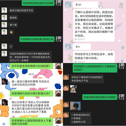 为引起同学们对于碎片时间的重视,倡导同学们充分利用碎片时间,合理安排、统筹兼顾,提高学习效率,聊城大学教育科学学院于4月19日在线上举办“充分利用碎片时间 做时间的主人”采访活动。
