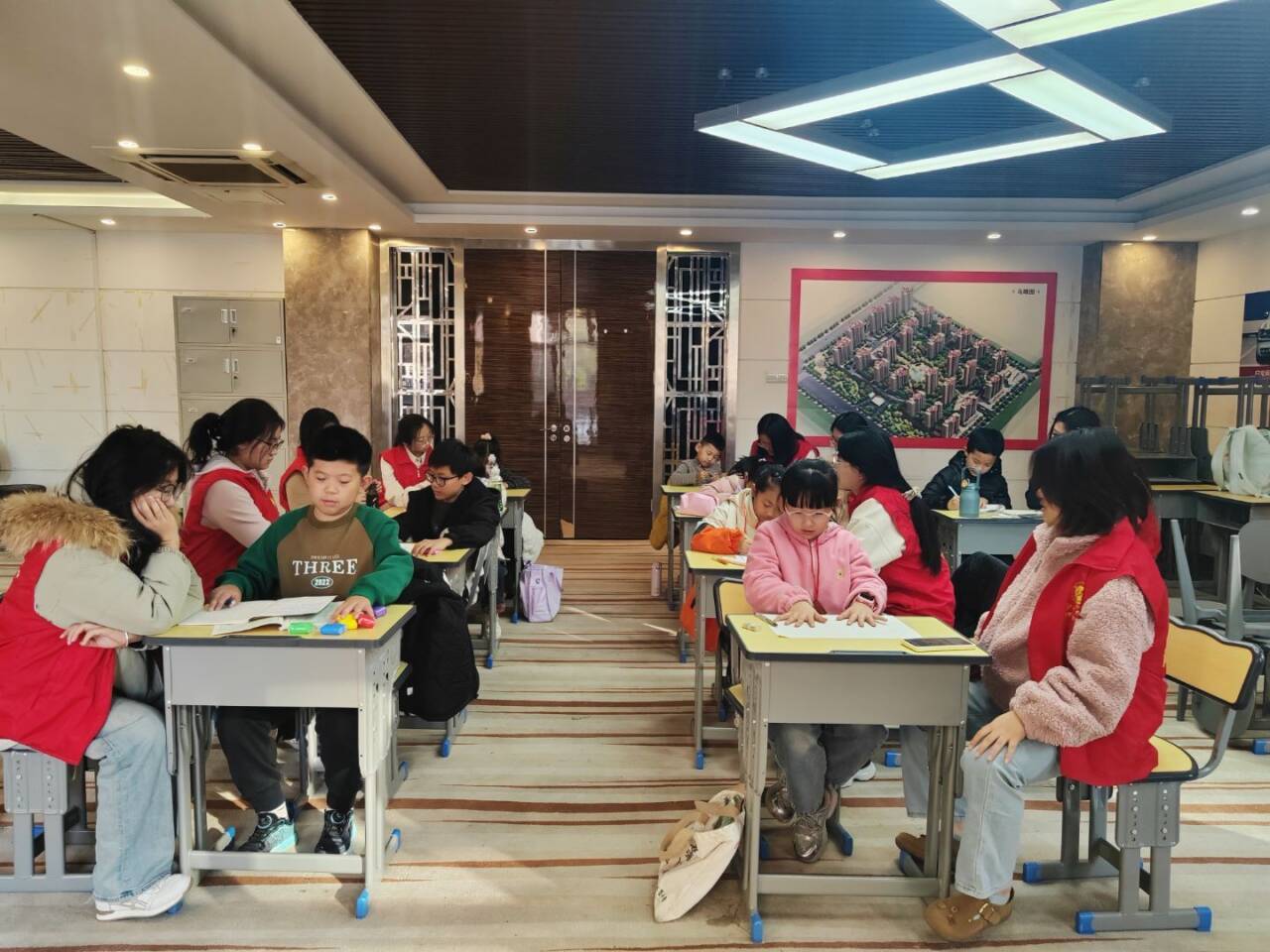 活动现场,志愿者们提前准备好画纸、超轻黏土和水彩笔等材料,围绕“我的温暖手套”这一主题,引导孩子们结合冬日生活记忆展开创作。孩子们踊跃参与,有的画出了缀满雪花图案的厚手套,有的描绘出与家人手拉手的温馨场景,用画笔表达对“温暖”的理解。志愿者们陪伴在孩子们身边,耐心地协助他们调整色彩、完善构图,活动室内洋溢着轻轻的画笔声和愉快的交流声。