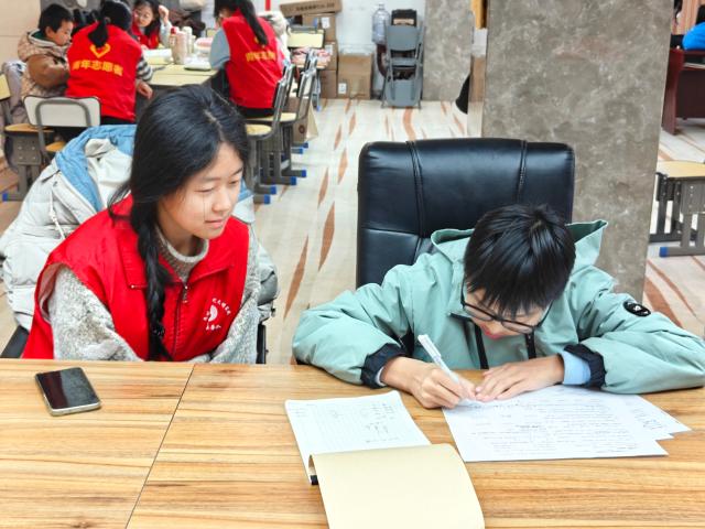 活动现场,志愿者耐心陪伴孩子们完成课业任务,围绕知识点进行细致讲解。在讲解过程中,志愿者采用浅显易懂的方式,助力社区儿童深化知识理解与记忆。针对知识薄弱点与经典错题,志愿者逐一讲解、耐心点拨,帮助孩子们查缺补漏、夯实基础。在休息时刻,志愿者还结合孩子们的兴趣互动交流,共同度过轻松愉快的时光。活动结束后,志愿者们分工协作,清扫场地、整理桌椅板凳,将活动场地恢复整洁。