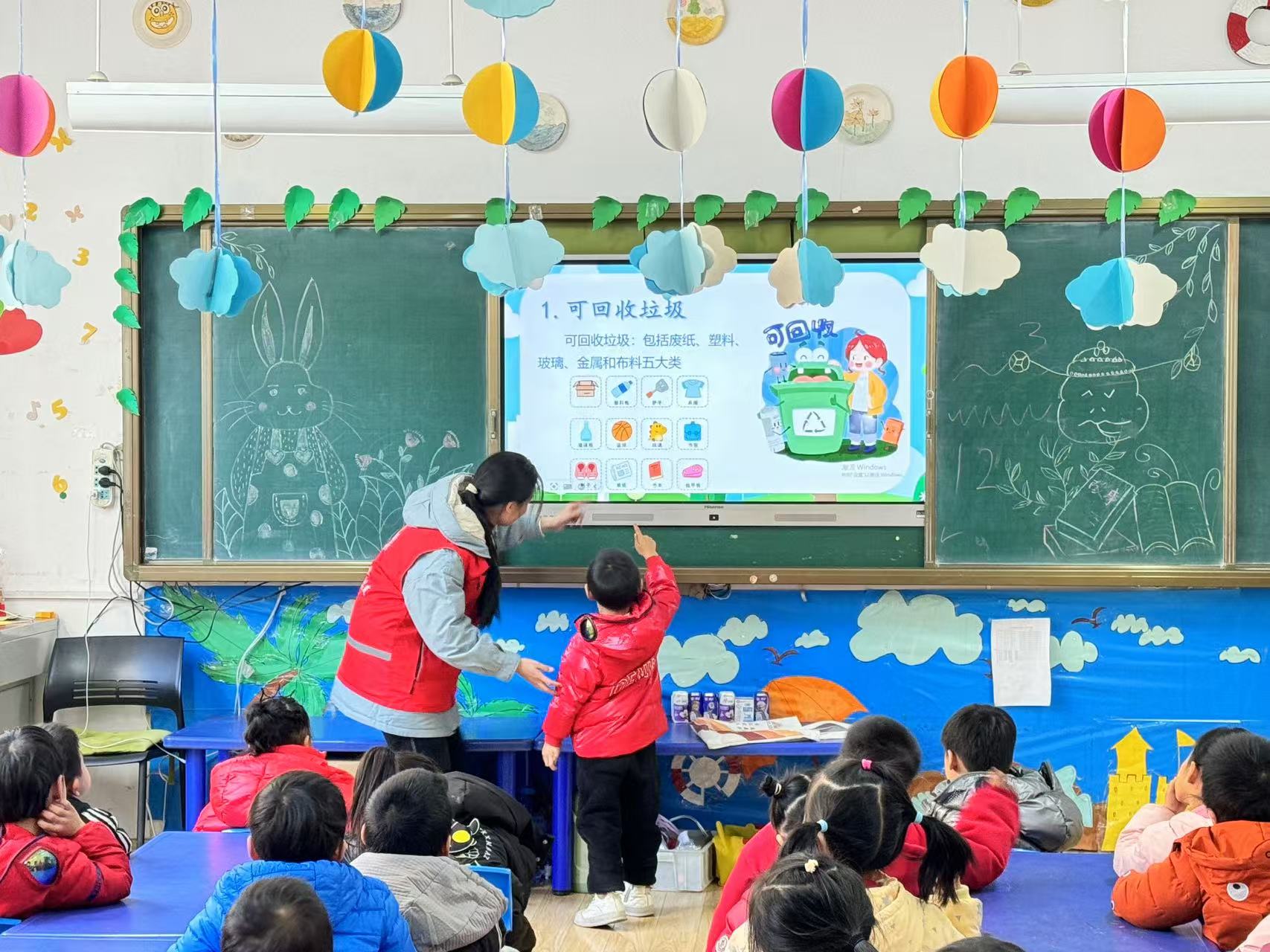 活动中,服务队成员播放儿歌带动现场气氛,借助图片和视频向小朋友们详细讲解了不同类型垃圾的分类方法,并通过举例帮助他们加深理解。在服务队成员的带领下,小朋友们积极参与了互动游戏。在“垃圾分类小能手”游戏中,小朋友们将印有各类垃圾的卡片投放到不同颜色的垃圾桶内,服务队成员通过小贴纸、小玩具等奖励,极大地调动了小朋友们的积极性。