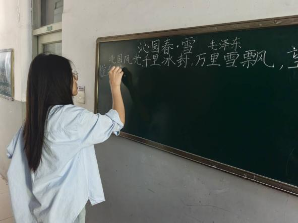 在5月10日的三笔字比赛中,选手们以毛泽东《沁园春·雪》为书写内容,通过黑板字、硬笔字、毛笔字三项内容展开角逐。比赛现场,同学们凝神静气,执笔挥毫。进行黑板字书写时,选手们注重字体结构的搭建与笔画粗细的变化,尽力展现粉笔字的独特魅力;在硬笔字比赛环节,钢笔于纸面轻快游走,书写出灵动字迹,参赛者们将诗词豪情与书法韵味巧妙融合,通过细腻的笔触呈现出硬笔书法的美感;在毛笔字书写环节中,选手们饱蘸浓墨,提按转折间尽显功力,将诗词的磅礴气势与毛笔书法的苍劲雄浑完美结合,以墨韵丹青诠释经典诗词的独特意境。经评委严格评审,王艺桦获一等奖,胡炜弘、周嘉昕获二等奖,苑霖雨、孙卓、吕思颖获三等奖。