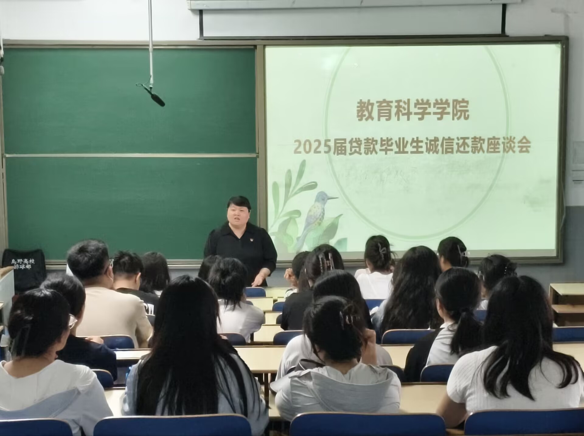 为引导毕业生树立诚信意识,自觉履行还款义务,维护良好个人信用,5月21日,教育科学学院在4#A224举办2025届毕业生助学贷款诚信教育系列活动,党委副书记吴伟伟、辅导员董君参与本次座谈会。