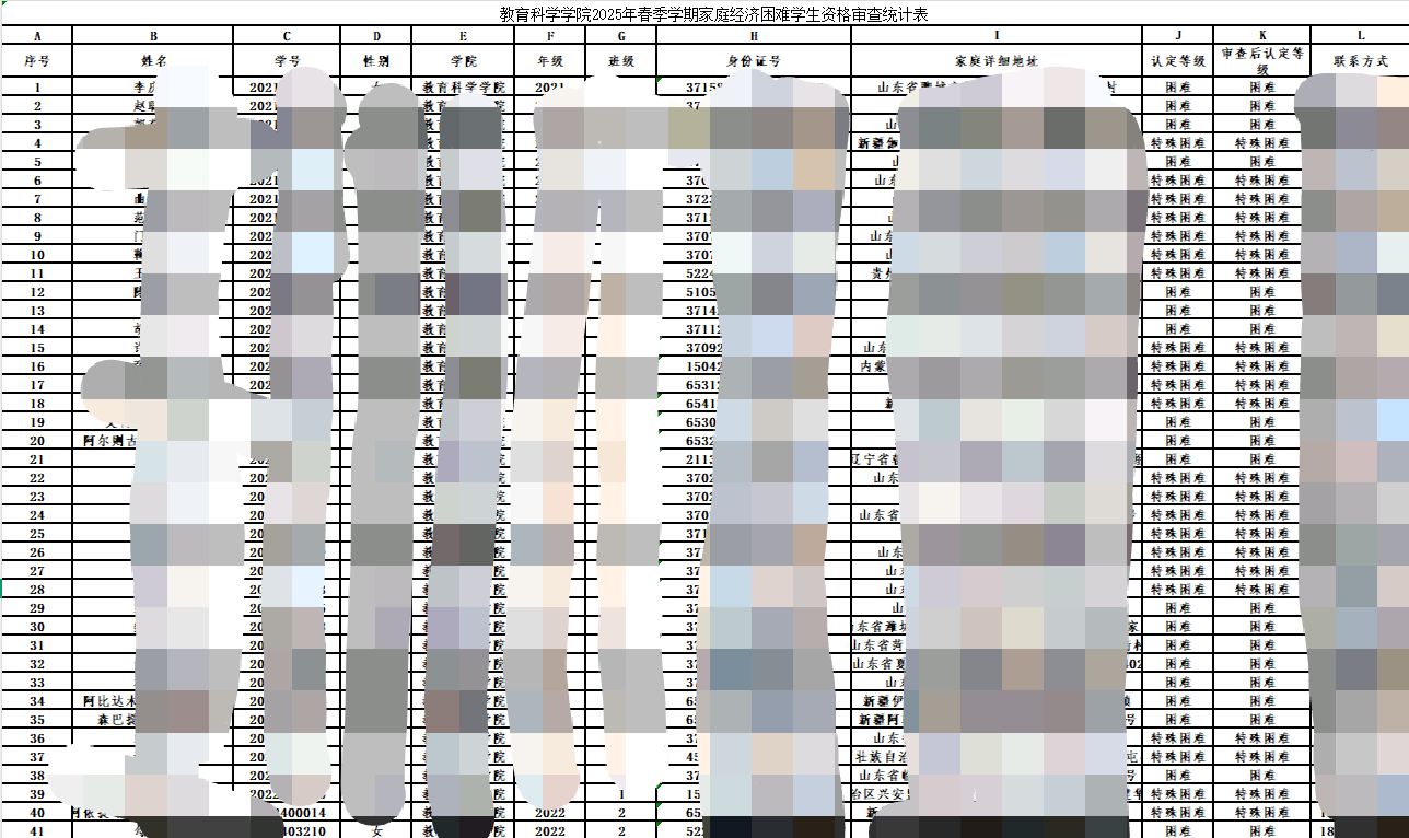 教育科学学院家庭经济困难学生2025年春季资格审查