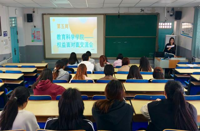 为提升同学们的权益保护意识,搭建好学院与学生之间的桥梁,及时解决同学们在学习、生活中遇到的问题,3月23日,教育科学学院于4#C121举办“权益面对面”交流会。