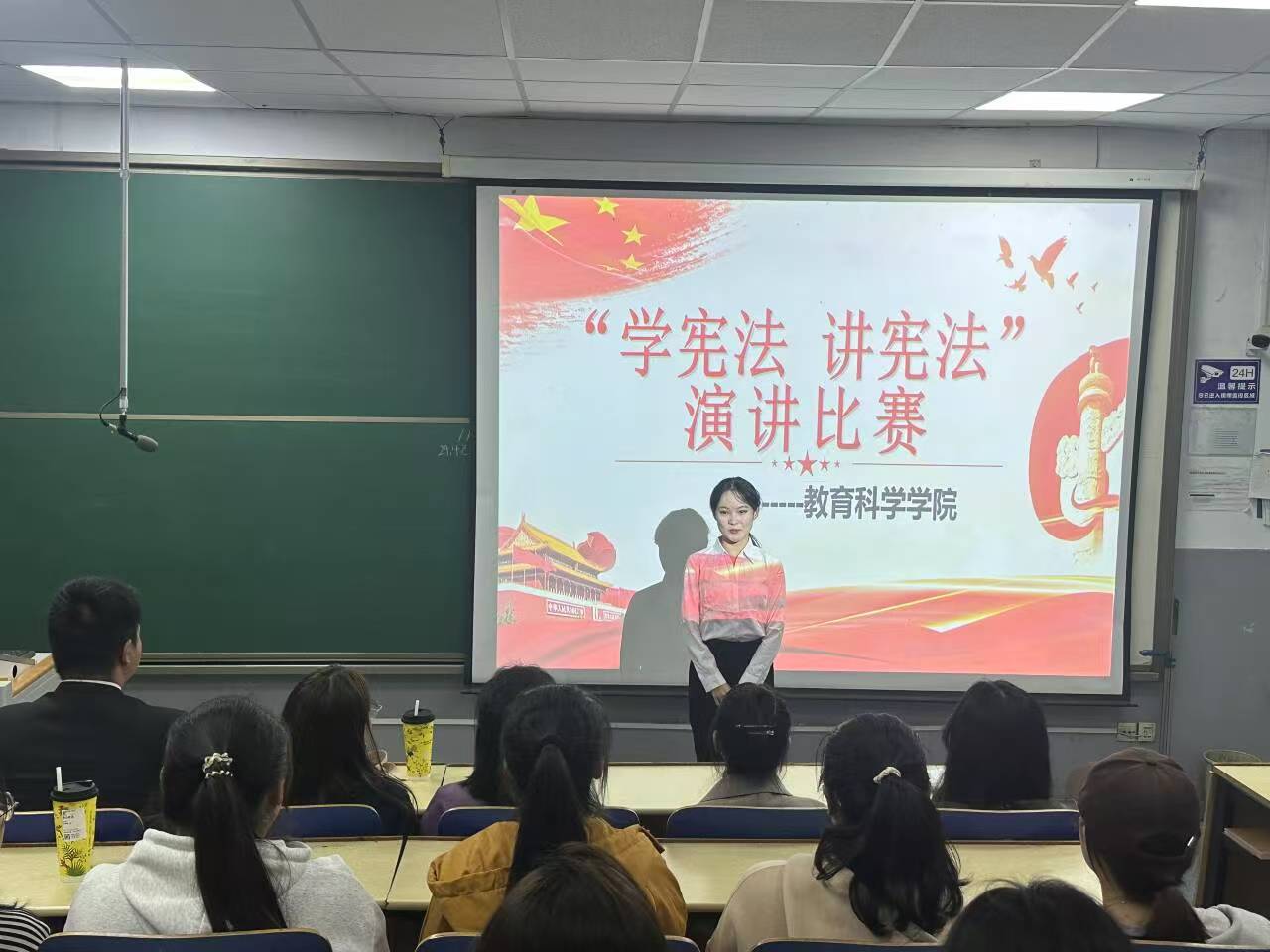 【教科】我院举办“学宪法 讲宪法”演讲比赛 作者:赵璐 发布时间: 2024-09-17 为深入学习贯彻习近平法治思想,提升我院学子的法治素养与社会责任感,9月15日,教育科学学院在4#A124举办“学宪法 讲宪法”演讲比赛。 比赛过程中,参赛选手们紧扣主题,结合自身经历与感悟,用真挚的情感阐述了对宪法的理解与认识。经评委综合评定,孙宝琛获一等奖,李红杰、孙晓娜(团体)获二等奖,魏亚坤获三等奖。 宪法在心,责任在肩。本次演讲比赛的成功举办,帮助同学们深刻理解了宪法的内涵与精神,有助于引导同学们树立正确的法治意识,积极为法治中国建设贡献青春力量。 (审核 董君)