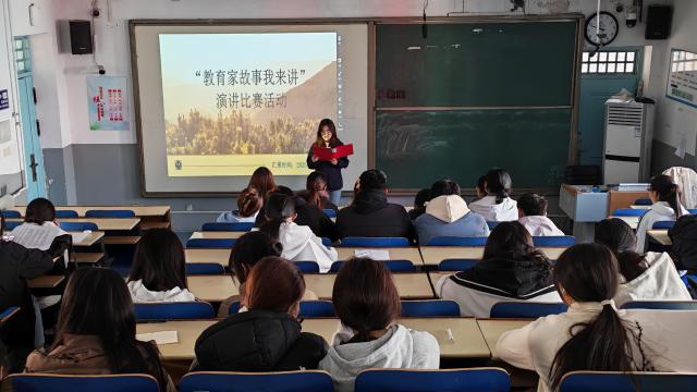 活动现场氛围浓厚,同学们认真投入。27 位同学依次上台分享,围绕陶行知、叶连平、张桂梅等多位教育家的生平事迹与教育实践展开讲述。演讲中,同学们结合自身理解,分享了对教育家精神的感悟。其中,孙晓娜同学演讲铿锵有力,精神饱满,其传递出的对教育事业的热忱感染了在场每一位同学;李俊瑶同学则着重讲述了教育家们在教育路上的艰辛经历,真挚的叙述不仅让同学们深受感动,更让大家对 “教育初心” 有了更深刻的思考。“陋室一间,桃李万千,三尺讲台,大爱无边。”教育不是冰冷的知识传递,而是生命对生命的影响。