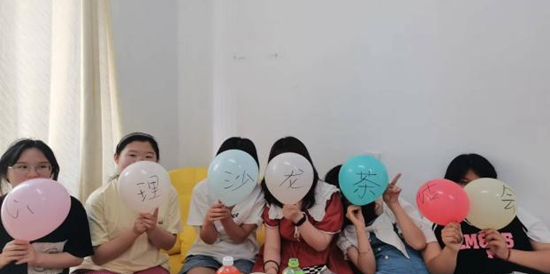 组织者为同学们准备零食,并在活动现场布置气球,营造舒适、温馨的活动氛围。主持人向同学介绍“5·25”大学生心理健康日的意义,并让参与者互相介绍自己,促进对彼此的了解。在主持人的带动下,大家进行自由分组,以淘汰制的游戏规则依次开展“不能说挑战”“谁是卧底”和“你来比划我来猜”三个解压小游戏,参与者分别通过语言暗示对方说出禁止词、描述所给关键词分辨“卧底”、手势比划所给提示来参与活动,活动现场气氛活跃,欢笑声不断。参与活动的同学纷纷表示压力得到了释放,也在游戏中体会到思考的乐趣,提高了语言表达能力和逻辑思维能力,可以更好地投入到日后的学习和生活中去。