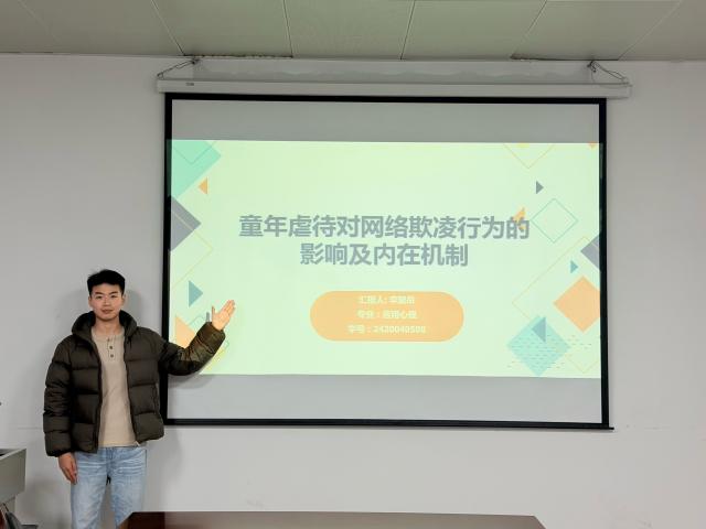 12月2日,教育科学学院在4#C103教室成功举办了研究生学术论坛。本次论坛以“童年虐待对网络欺凌行为的影响及内在机制”为主题,由2024级应用心理专业研究生李望岳担任主讲人,特邀亓立东老师担任点评嘉宾,学院部分研究生参与了本次学术论坛。