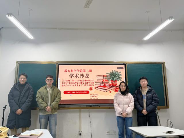 12月25日,教育科学学院于4#C106成功举办研究生学术沙龙活动。本次活动由学术科研部李艳兰主持,张家铜、李昕逸、王奕心、郑波四位研究生担任主讲人,学院全体心理学与应用心理专业研究生参加。