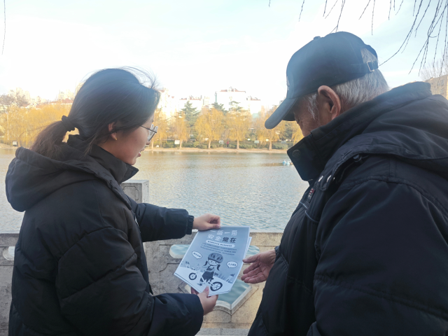 为提升社区居民的交通安全意识,帮助社区居民提升自我防范能力,1月15 日至 25日教育科学学院“温暖同行”服务队赴聊城、青岛、烟台等地开展“一盔一'带’ 温暖常在”交通安全知识宣讲活动。