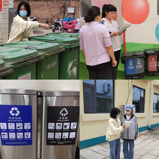 本次社会实践分为普及垃圾分类知识和实施问卷调研两个环节。志愿者通过向居民发 放垃圾分类指南、宣传册,摆放垃圾分类知识展板等方式,向居民进行垃圾分类知识宣传,并普及可回收与不可回收垃圾的分类方法,让他们了解垃圾分类的意义。同时向社区成员发放问卷进行调研,问卷结果显示,参与调研的90%市民认识到垃圾分类是每个人的责任和义务,但是仅有20%的市民能够真正地做到坚持垃圾分类,志愿者呼吁大家遵守垃圾分类规则,一同践行垃圾分类。