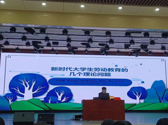 苏春景教授首先结合自己童年的劳动经历讲起,向同学们讲解自己对于劳动的内涵、劳动的价值、劳动的形式的理解,在此基础上重点阐释了当前大学生劳动教育课程中的几个核心理论问题,为同学们学懂、弄通、做实劳动教育理论与实践课程提供了重要的理论指引。苏教授提出,如果说专业教育是关乎学生成才的问题,那么劳动教育则是关乎学生成人的问题;作为新时代的大学生,我们应当从虚拟世界这一“元宇宙”中抽离出来,更多接触现实世界,了解有关劳动教育的相关课题研究,体会劳模精神,向劳动模范学习,在日常的学习与生活中进行有温度的劳动教育。最后,苏教授对大学生劳动教育的几个理论问题进行了概括,提出要在文化视域下研究大学生劳动教育;要在日程生活和学习工作中树立践行“大劳动”观念;要用“仁义礼智信”“温良恭俭让”十个字,理解和落实劳动教育的相关理论和实践问题。最后,李军院长对苏教授的报告进行了总结,李院长指出苏春景教授的报告风趣幽默,为同学们上了一堂深入浅出的劳动教育理论课程,并再次对苏教授表示感谢。