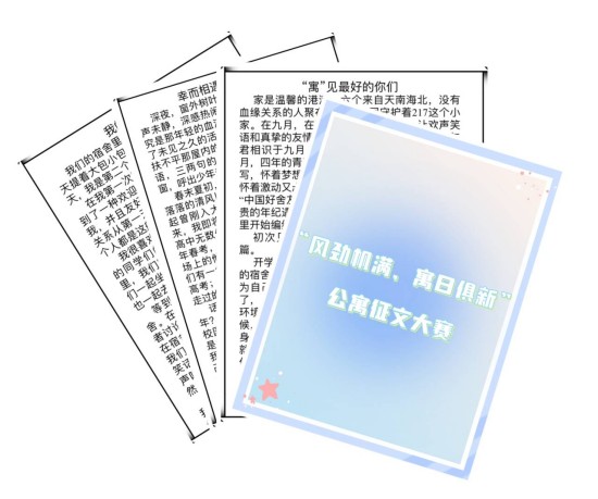 为弘扬积极向上的宿舍文化,构建和谐公寓生活,展现公寓风采,教育科学学院于5月5日至7日在线上举办“风劲帆满,寓日俱新”公寓征文大赛。