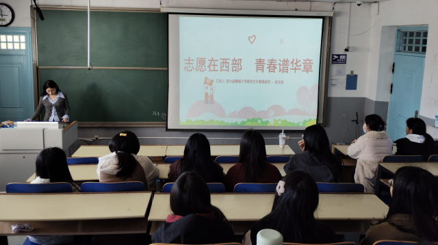 为帮助同学们更加全面地了解西部计划,激励更多同学到基层去、到西部去、到祖国和人民最需要的地方去,3月16日,教育科学学院在4#A124举办“逐梦西部 绽放青春”西部计划志愿者经验分享交流会,本次活动邀请孟令彦作为主讲人。